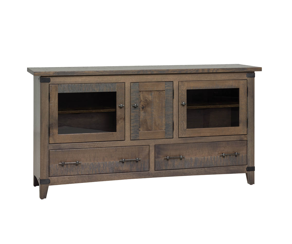 Features: Dovetailed drawers with full extension slides One adjustable shelf behind behind each glass door