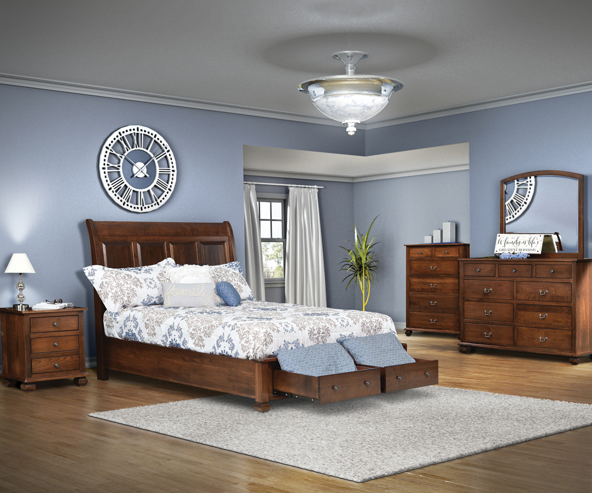 Items shown in Sap Cherry. Additional Pieces Not Shown: 7 Drawer Dresser,